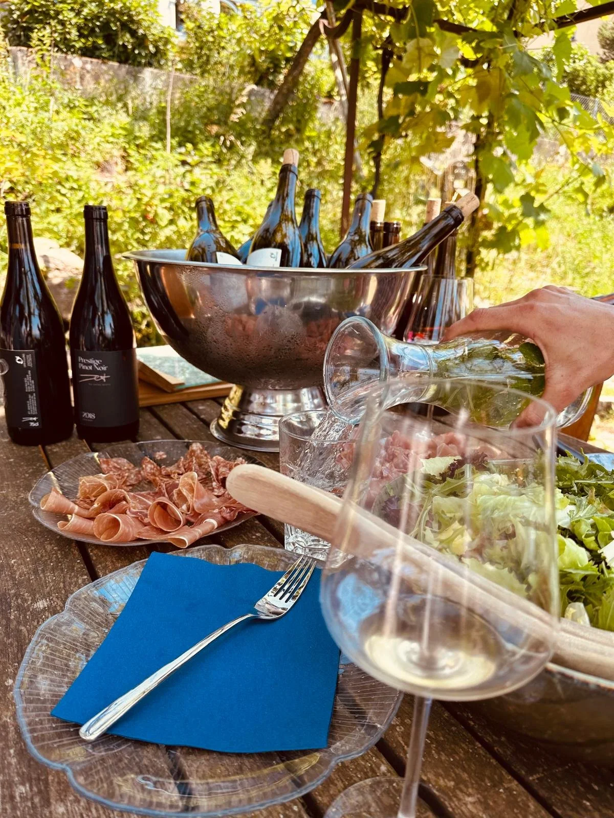 Vergesst den Alltag und taucht ein in die entspannte Atmosphäre unserer Reben. Während der Grill angeheizt wird, starten wir mit einem Glas kühlem JET-Schaumwein oder unserem frischen Weisswein. Wir zeigen euch, wo unsere Trauben wachsen, bevor wir gemeinsam zur JET Tavolata bitten.