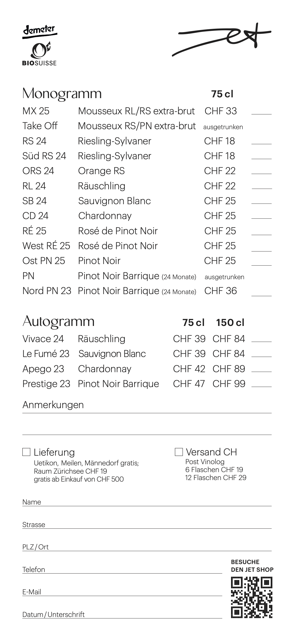 Du brauchst den Wein sofort? Schau auf unserem JET Finder vorbei und finde eine Weinhandlung in deiner Nähe.